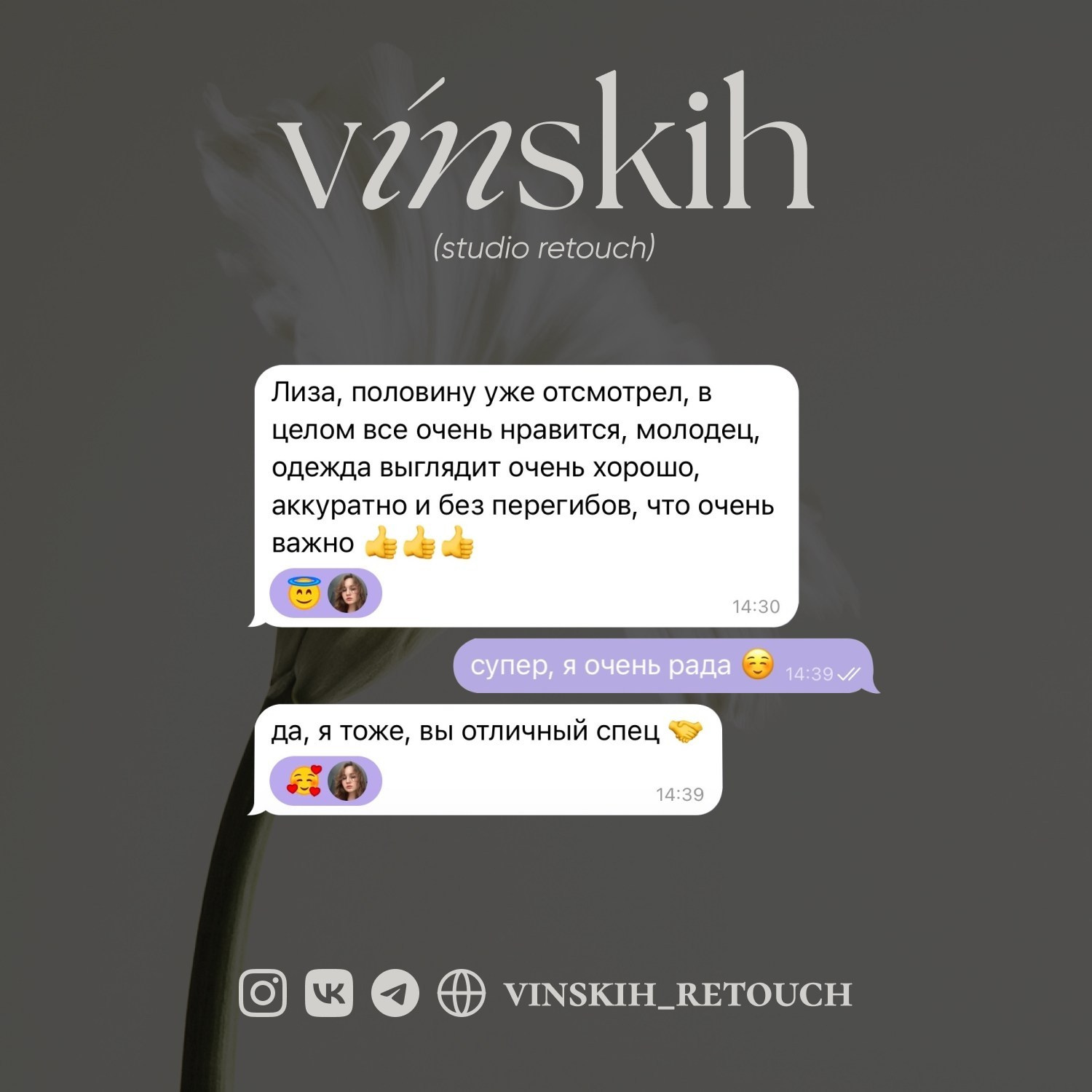 Чистую и аккуратную ретушь в срок — Приятное общение без стресса — Полную уверенность в результате