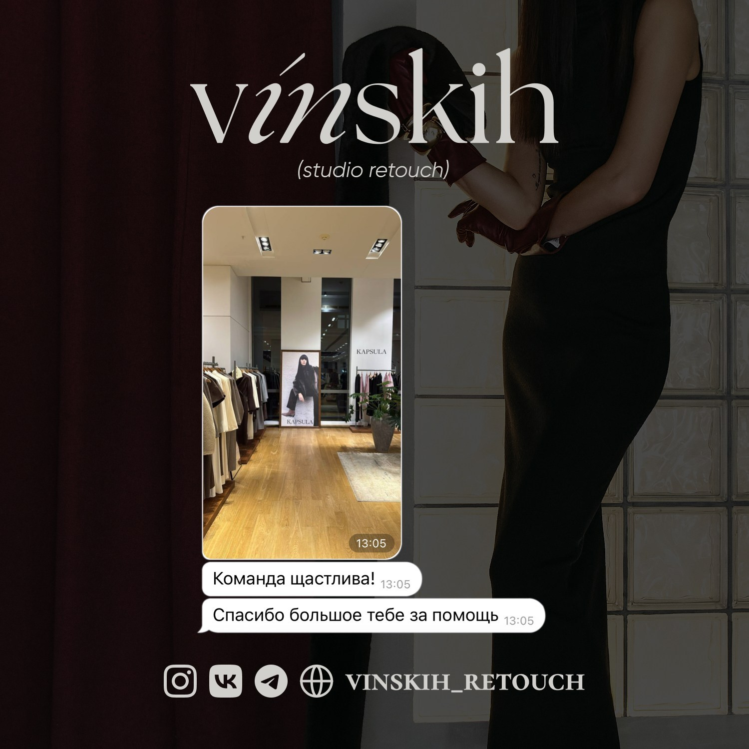 Стилистика и качество как у топовых брендов (сияние кожи, зернистость)