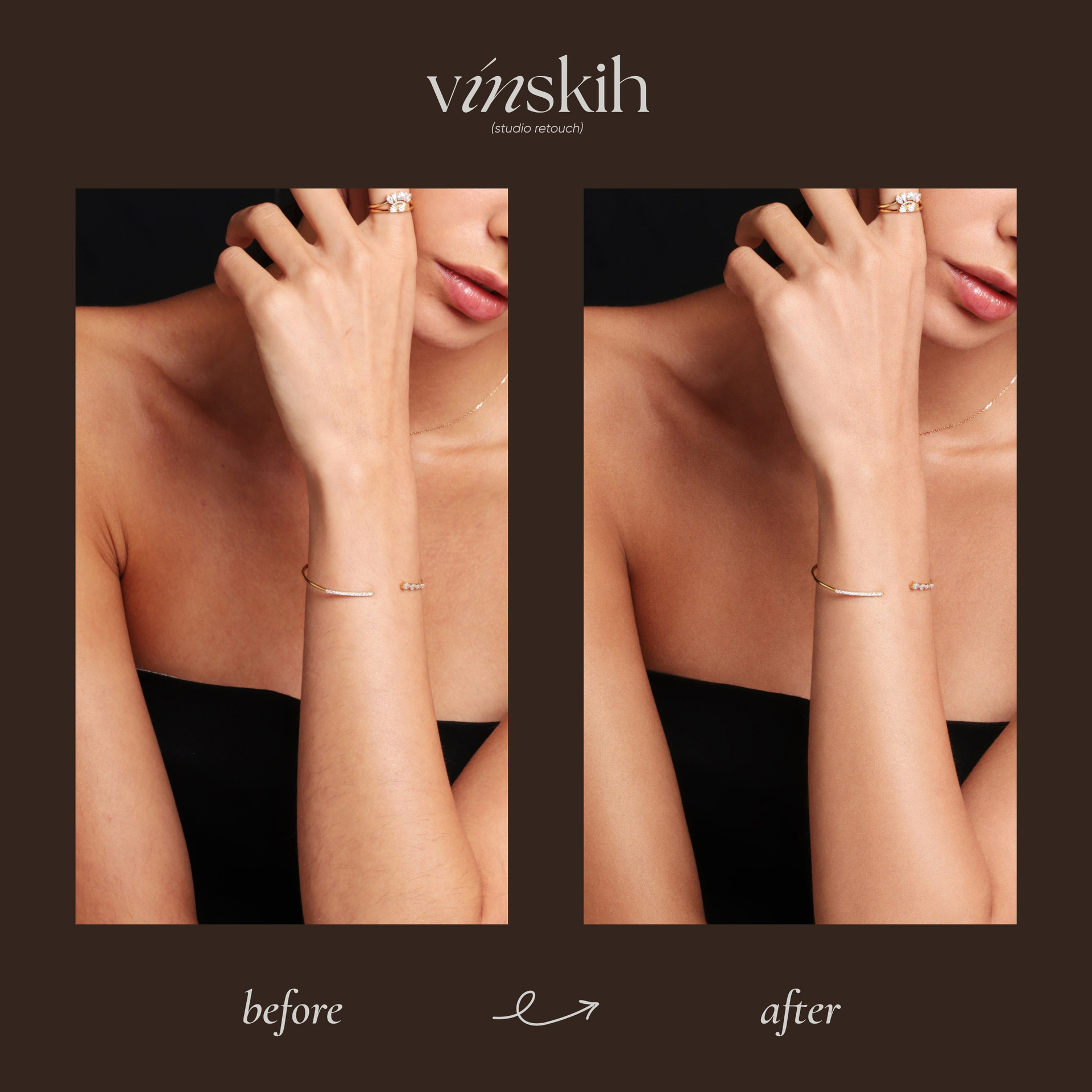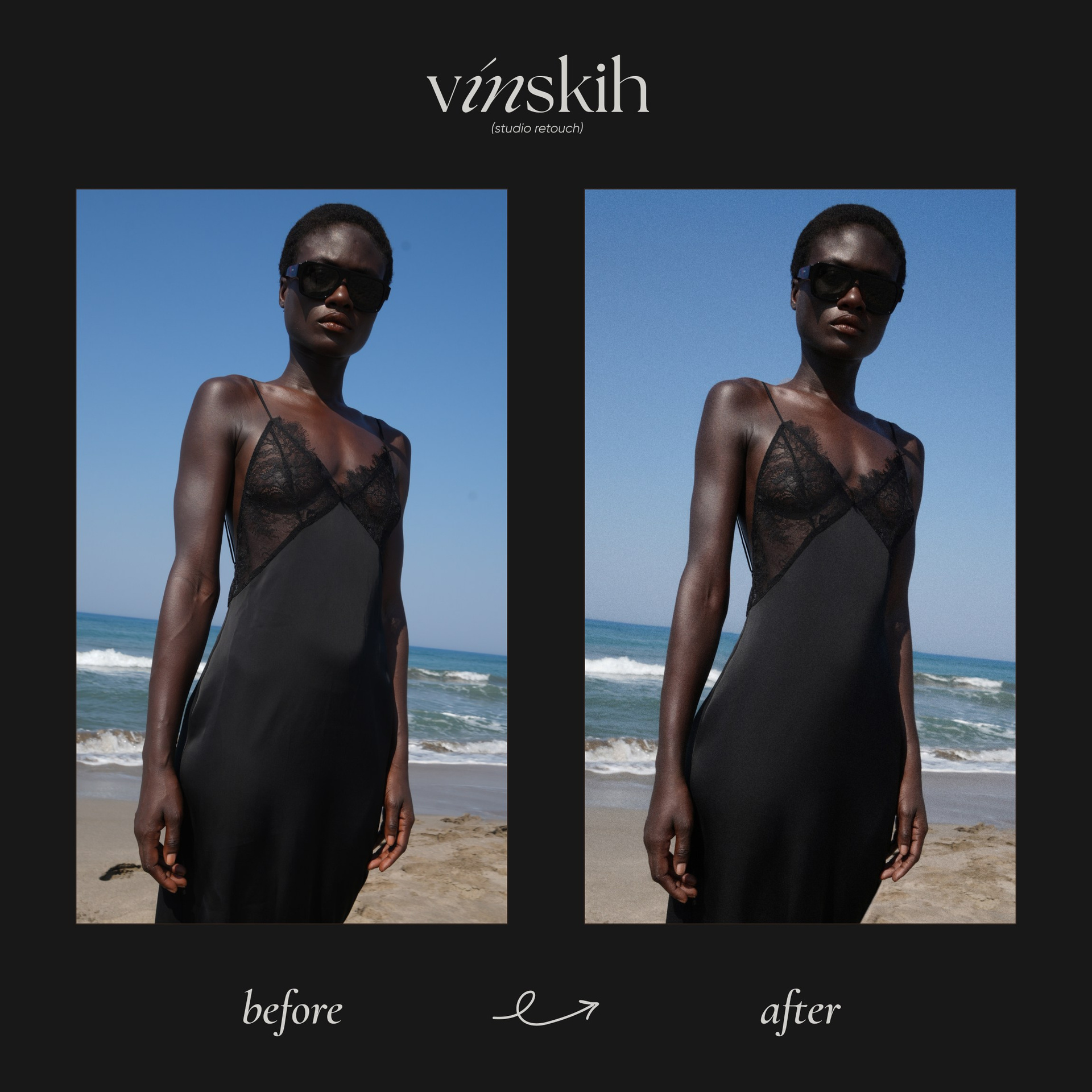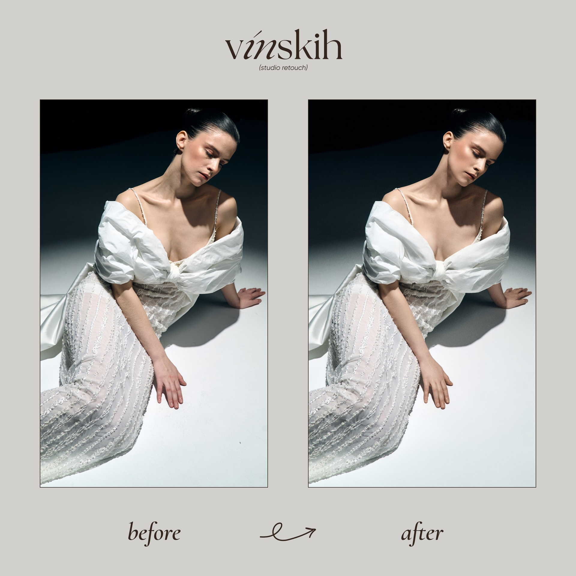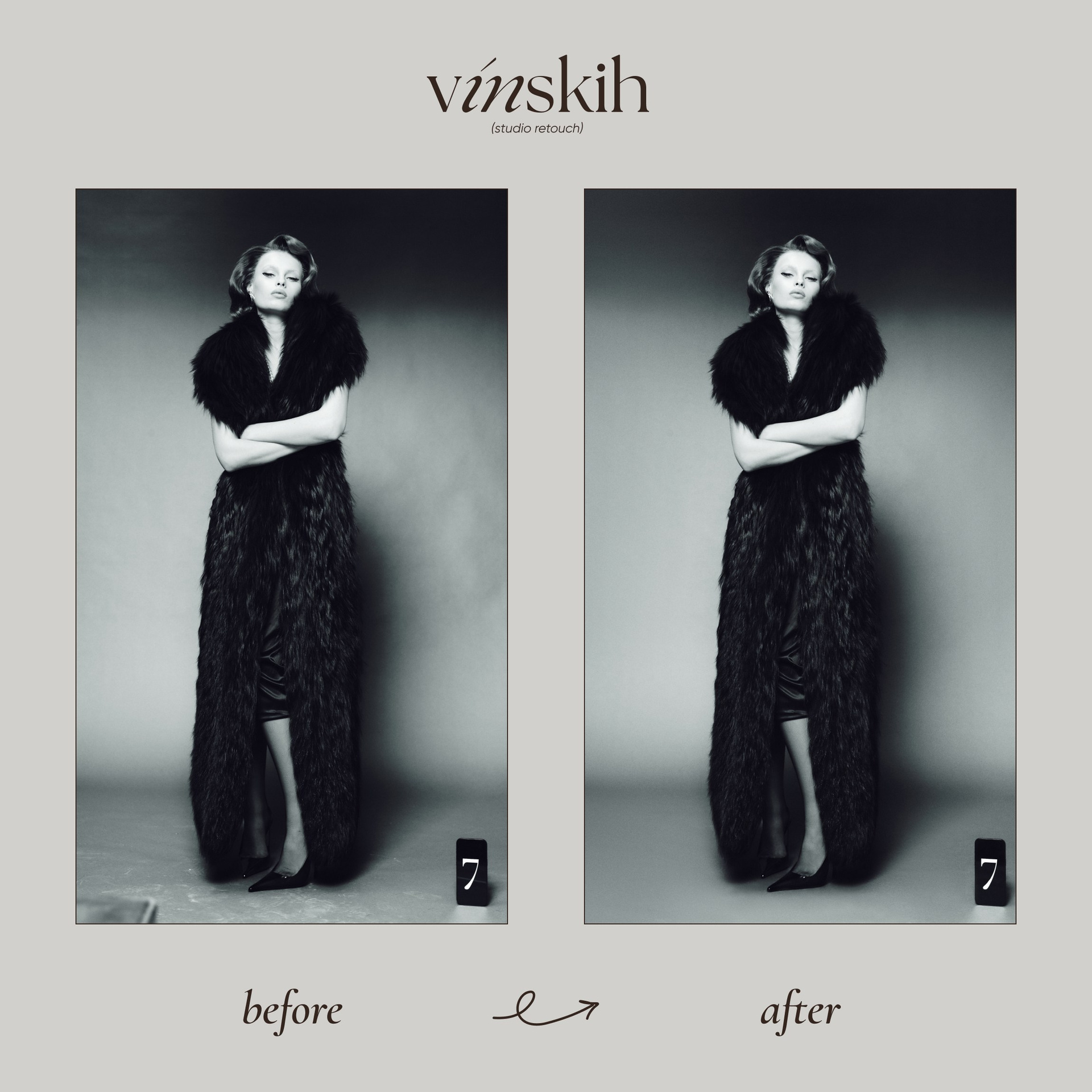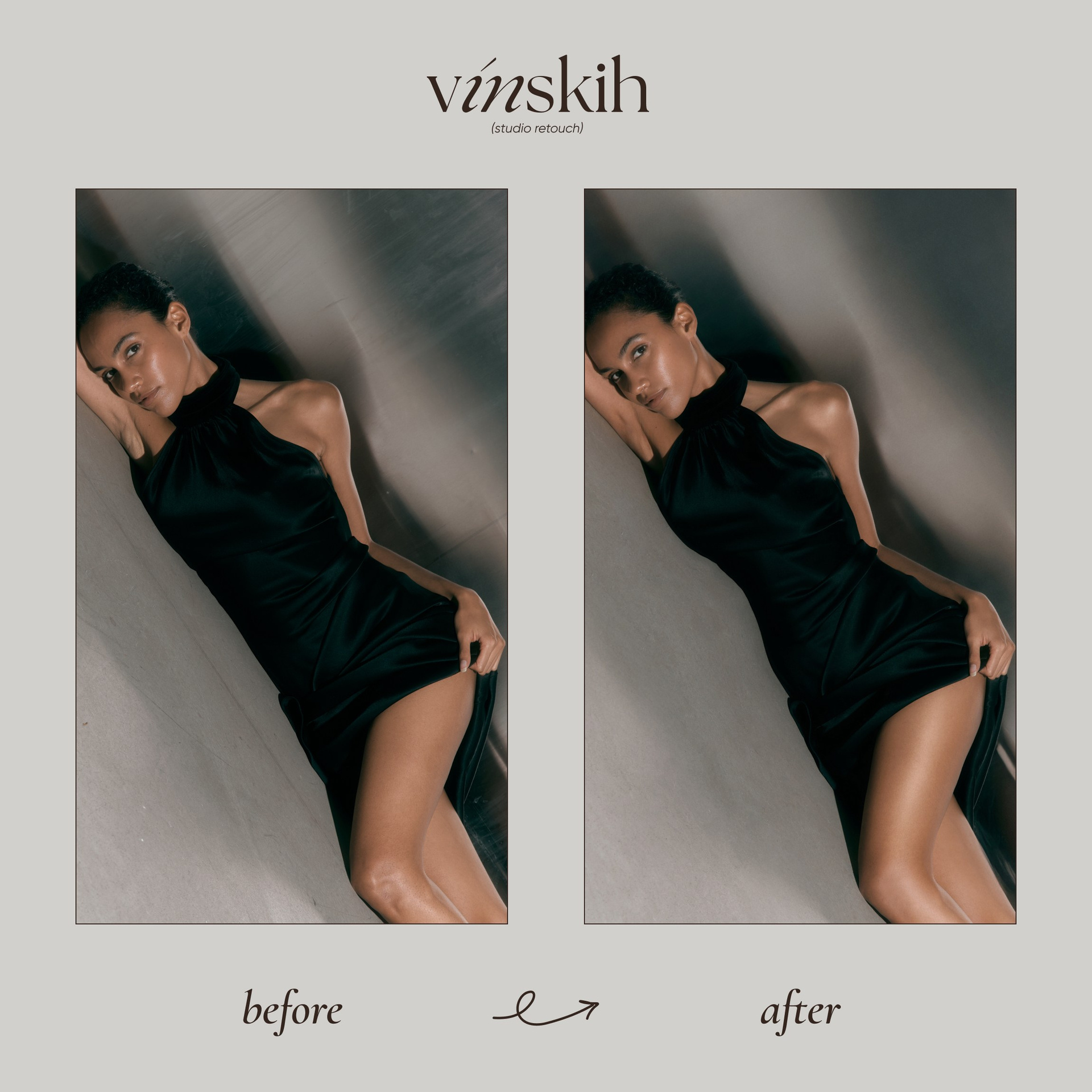 Задачи: Чистка и тонирование ковра (песочный оттенок), чистка циклорамы, ретушь кожи и одежды, удлинение ног, удаление лишних волосков, добавление лёгкого глянца и деликатное усиление текстуры кожи